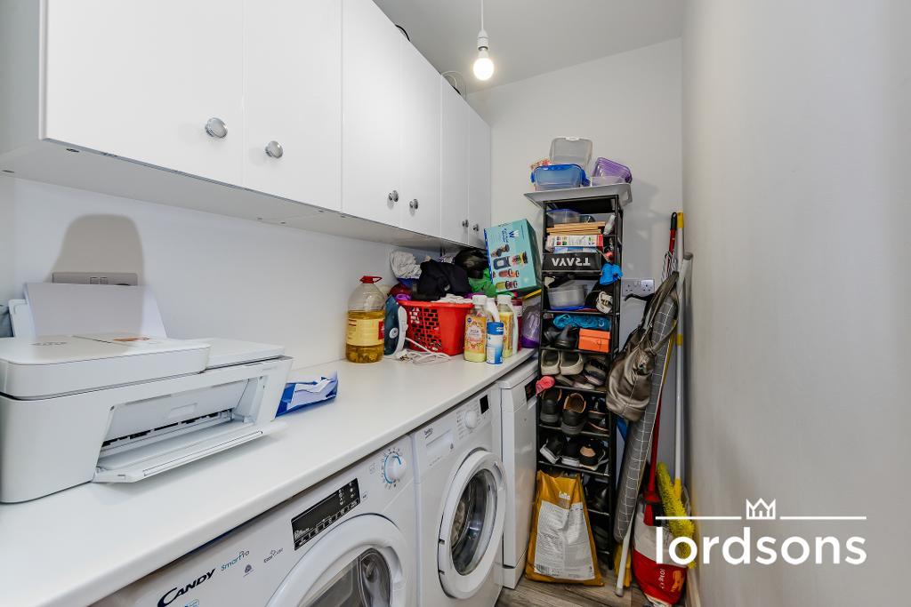 The family bathroom is fully tiled with a marble-effect finish and fitted with a bath, shower, vanity sink, and WC. A separate utility room (1.88m x 1.31m) provides additional storage and space for laundry appliances.
